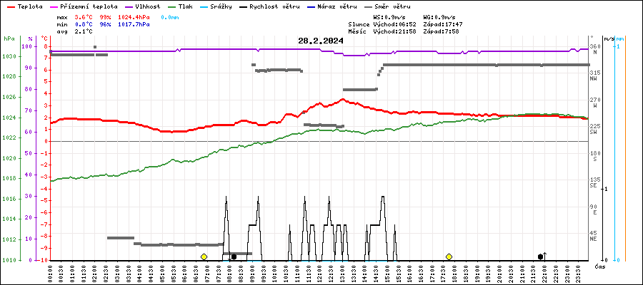 | Maximální teplota: | 3.6°C | v 13:00 |