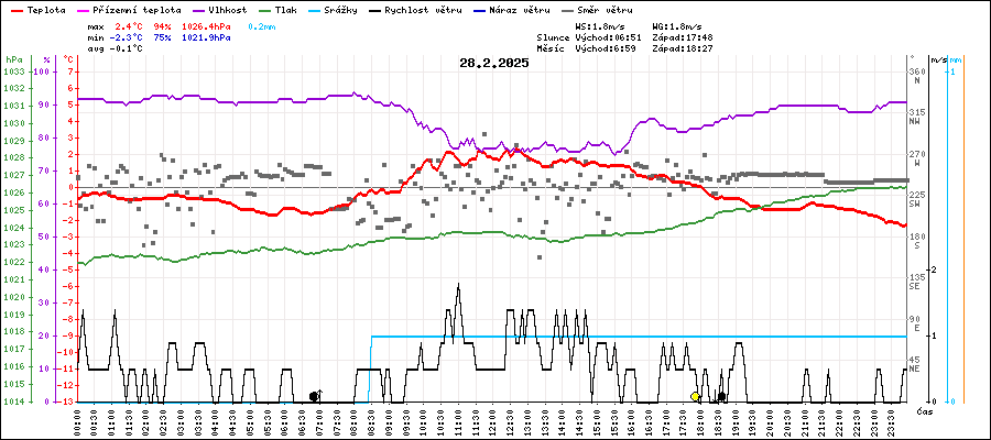 | Maximální teplota: | 2.4°C | v 12:40 |