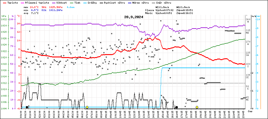 | Maximální teplota: | 10.8°C | v 14:25 |