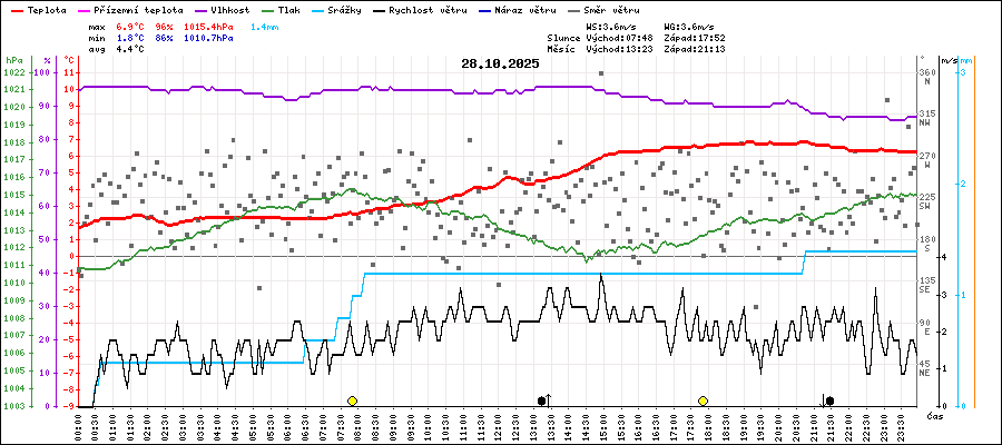 | Maximální teplota: | 6.9°C | v 19:05 |
