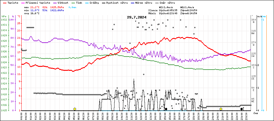 | Maximální teplota: | 21.2°C | v 14:55 |