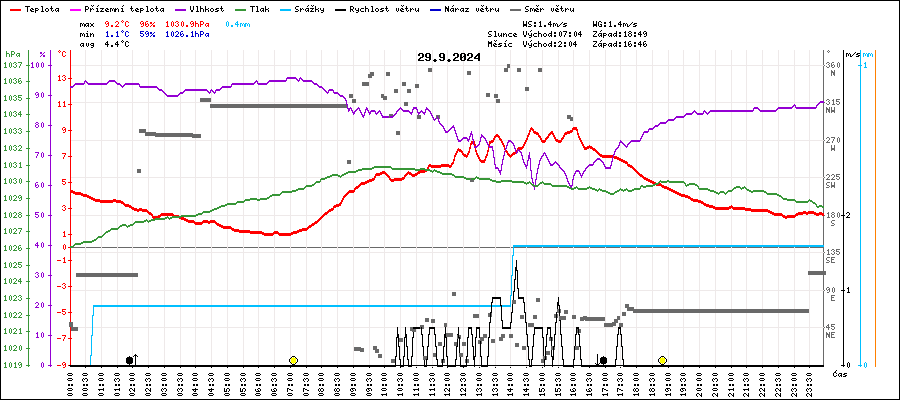 | Maximální teplota: | 9.2°C | v 14:40 |