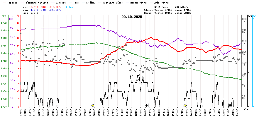| Maximální teplota: | 12.2°C | v 14:05 |