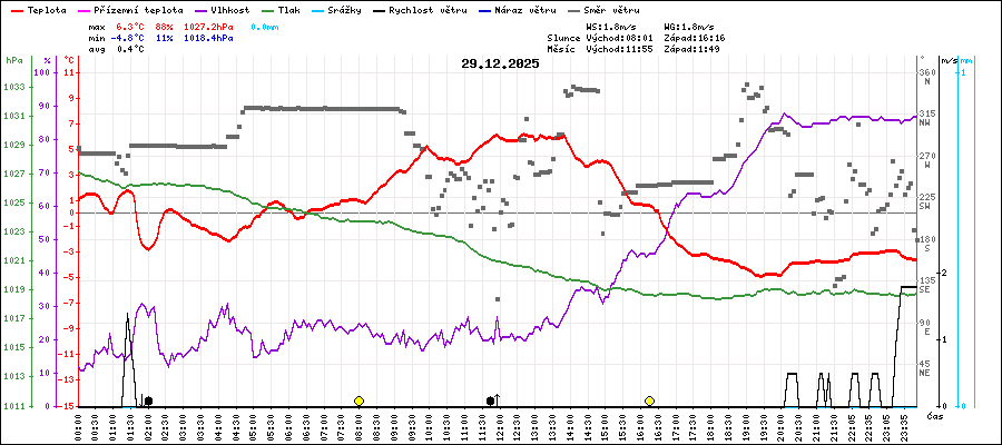 | Maximální teplota: | 6.3°C | v 12:40 |