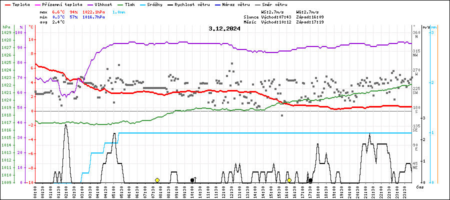 | Minimální teplota: | 0.3°C | v 19:00 |