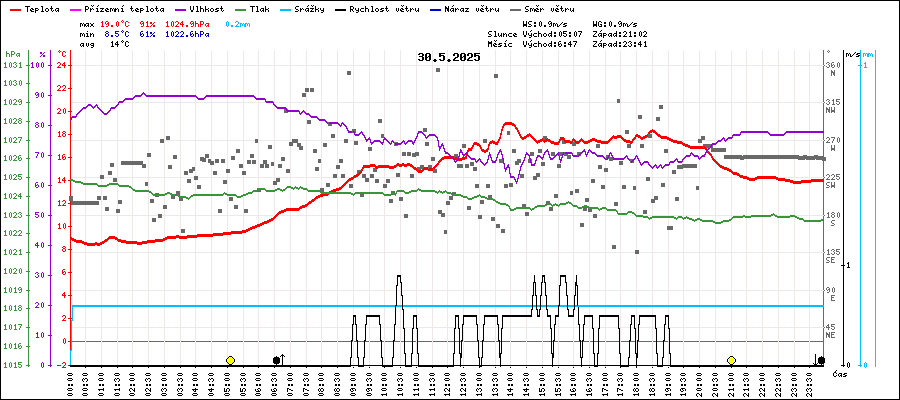 | Maximální teplota: | 19.0°C | v 13:50 |