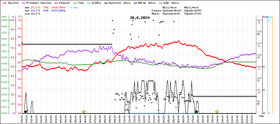 | Maximální teplota: | 27.2°C | v 16:00 |