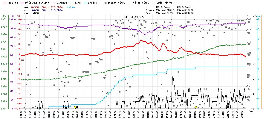 | Minimální teplota: | 0.6°C | v 23:50 |
