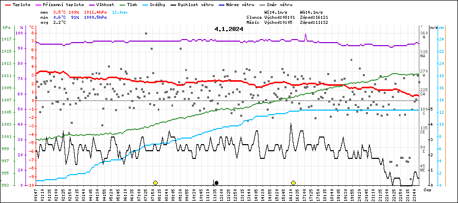 Maximální teplota:3.5°C v 01:02