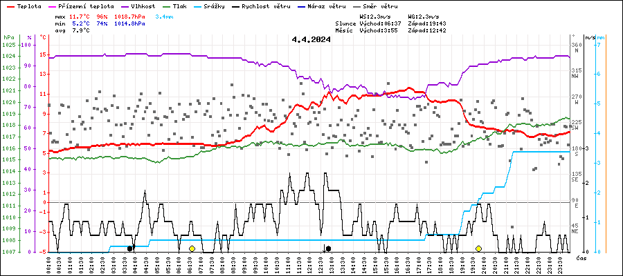 Průměrná teplota:7.6°C (tepl. v 8 + 15 + 2 x 22 h)