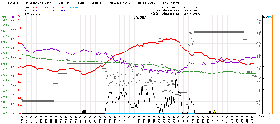 | Minimální teplota: | 18.1°C | v 06:15 |