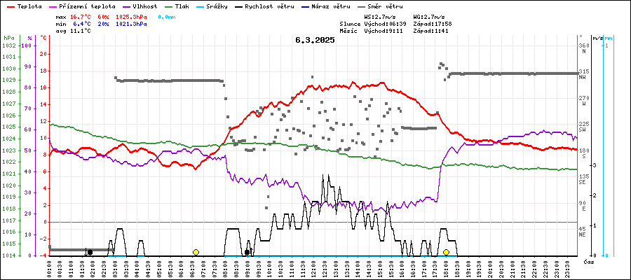 | Maximální teplota: | 16.7°C | v 13:45 |