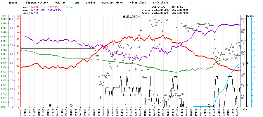 Maximální teplota:19.5°C v 12:55