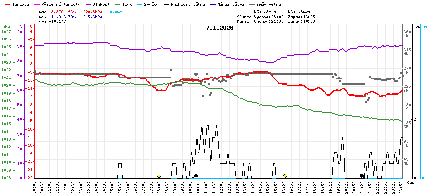 | Maximální teplota: | -8.8°C | v 15:00 |
