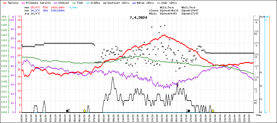 Průměrná teplota:19.4°C (tepl. v 8 + 15 + 2 x 22 h)