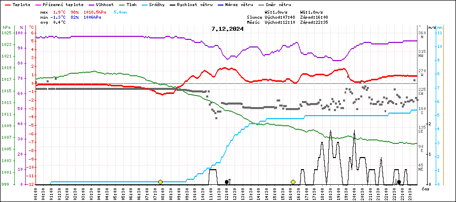| Minimální teplota: | -1.3°C | v 07:55 |