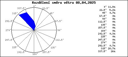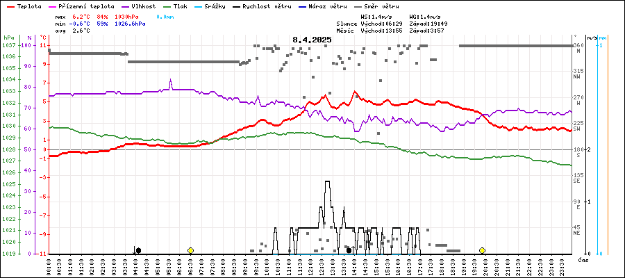 | Maximální teplota: | 6.2°C | v 14:00 |