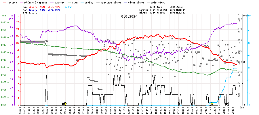 | Průměrná teplota: | 17.7°C | (tepl. v 8 + 15 + 2 x 22 h) |