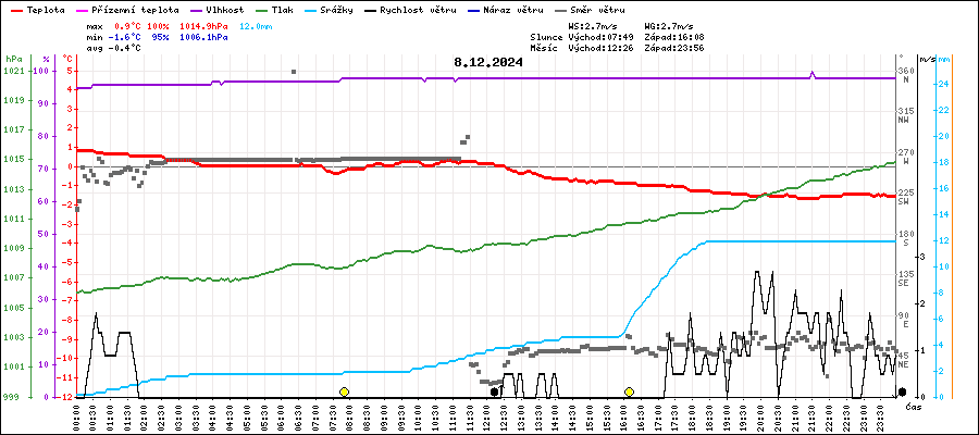 | Minimální teplota: | -1.6°C | v 21:05 |