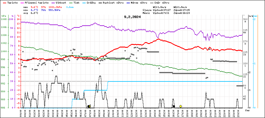 Maximální teplota:9.6°C v 14:50