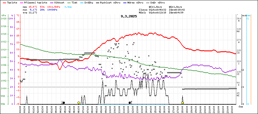 | Maximální teplota: | 15.9°C | v 13:05 |